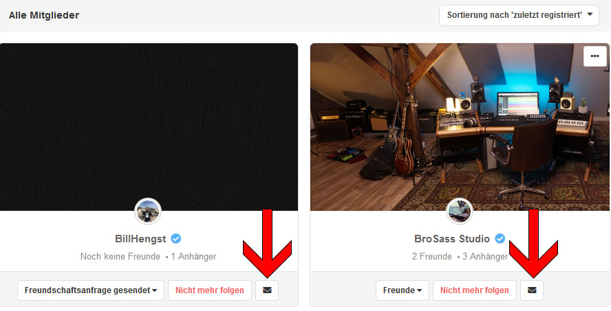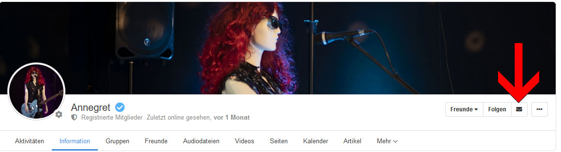 Außerdem gibt es bei der Ansicht eines Profils immer das kleine "Briefumschlag-Symbol" rechts unter dem breiten Cover Bild.